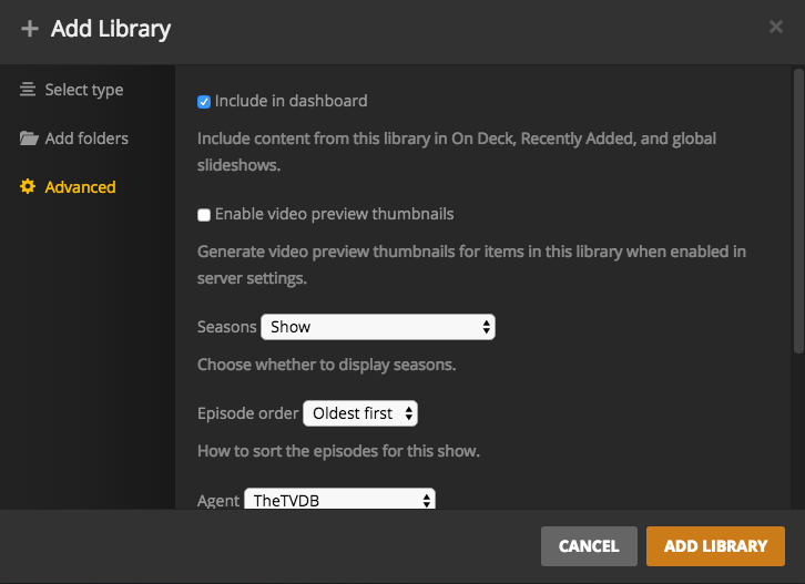 Note: If you would like to have custom Plex libraries (more than just a Movies and TV one), see Customizing Plex Libraries.